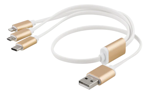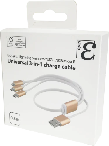Multiladdare, USB-C, Lightning, Micro USB, USB-A, 50cm, vit Ladda upp till tre olika enheter samtidigt, alla från en enda USB-A-port. Perfekt för en resa med vänner eller familj där mer än en person behöver ladda sina enheter samtidigt. Ta med en powerbank och Multiladdaren, och alla kan njuta av bekvämligheten med ett laddat batteri utan att behöva turas om.